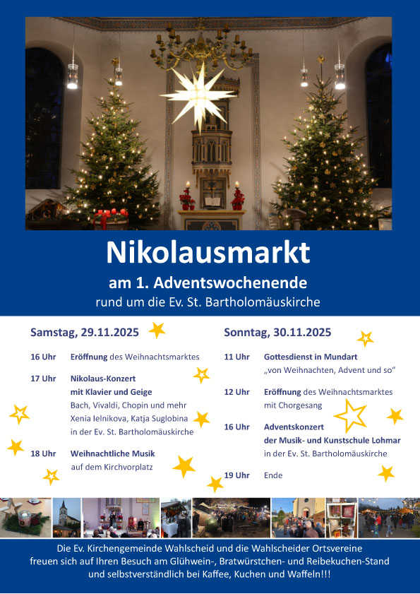 Nikolausmarkt rund um die Ev. St. Bartholomäuskirche Wahlscheid