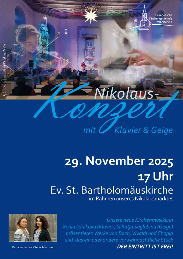 Samstag, 17:00 Uhr Nikolaus-Konzert mit Klavier und Geige in der Kirche